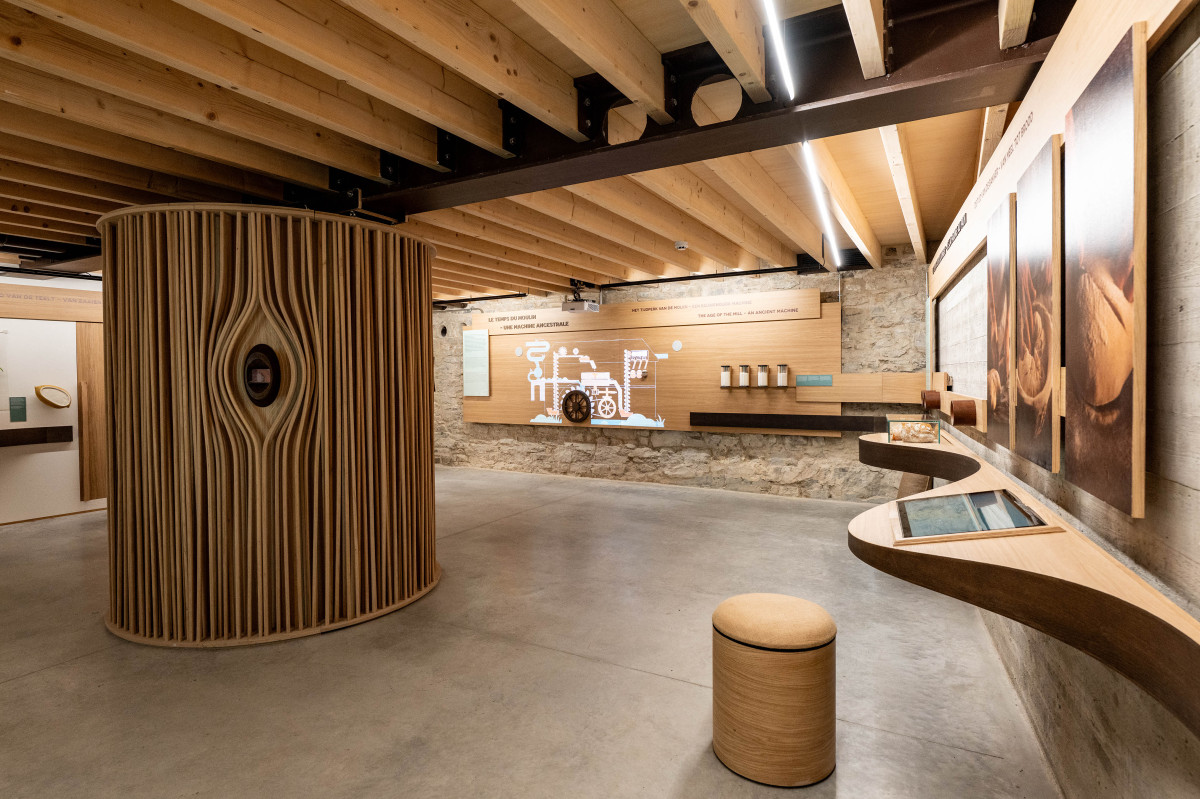 Kascen a développé avec Christophe Gaeta (Tramex Company) un parcours rythmé par différentes temporalités liées à la production de pain, allant de la journée de travail des agriculteurs, meuniers et boulangers jusqu’aux cycles plus longs comme les saisons ou la récolte. La visite met en lumière un retour aux pratiques anciennes de meunerie, abandonnées au 19e siècle et aujourd’hui réhabilitées, à l’image de la roue du moulin.