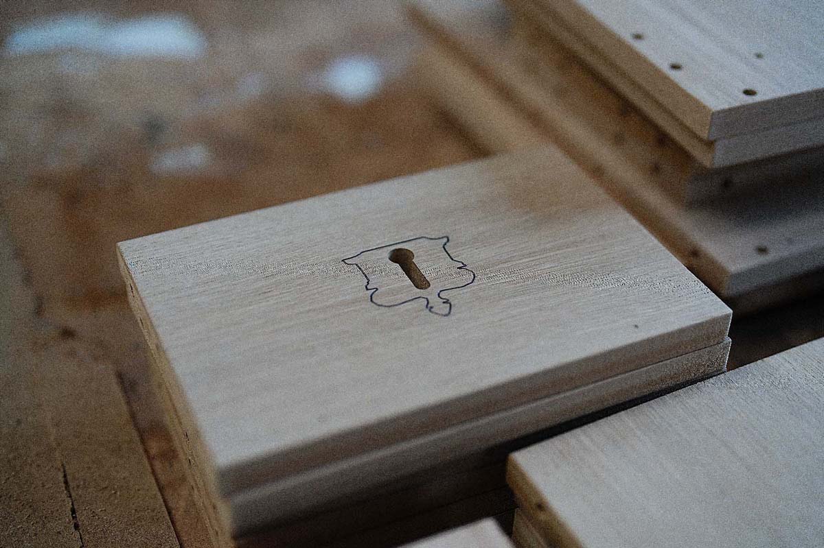 Nous avons travaillé en circuit court pour le bois de la construction du mobilier de la visite, en choisissant des essences de bois locales et sourcées à moins de 10km de nos ateliers partenaires.