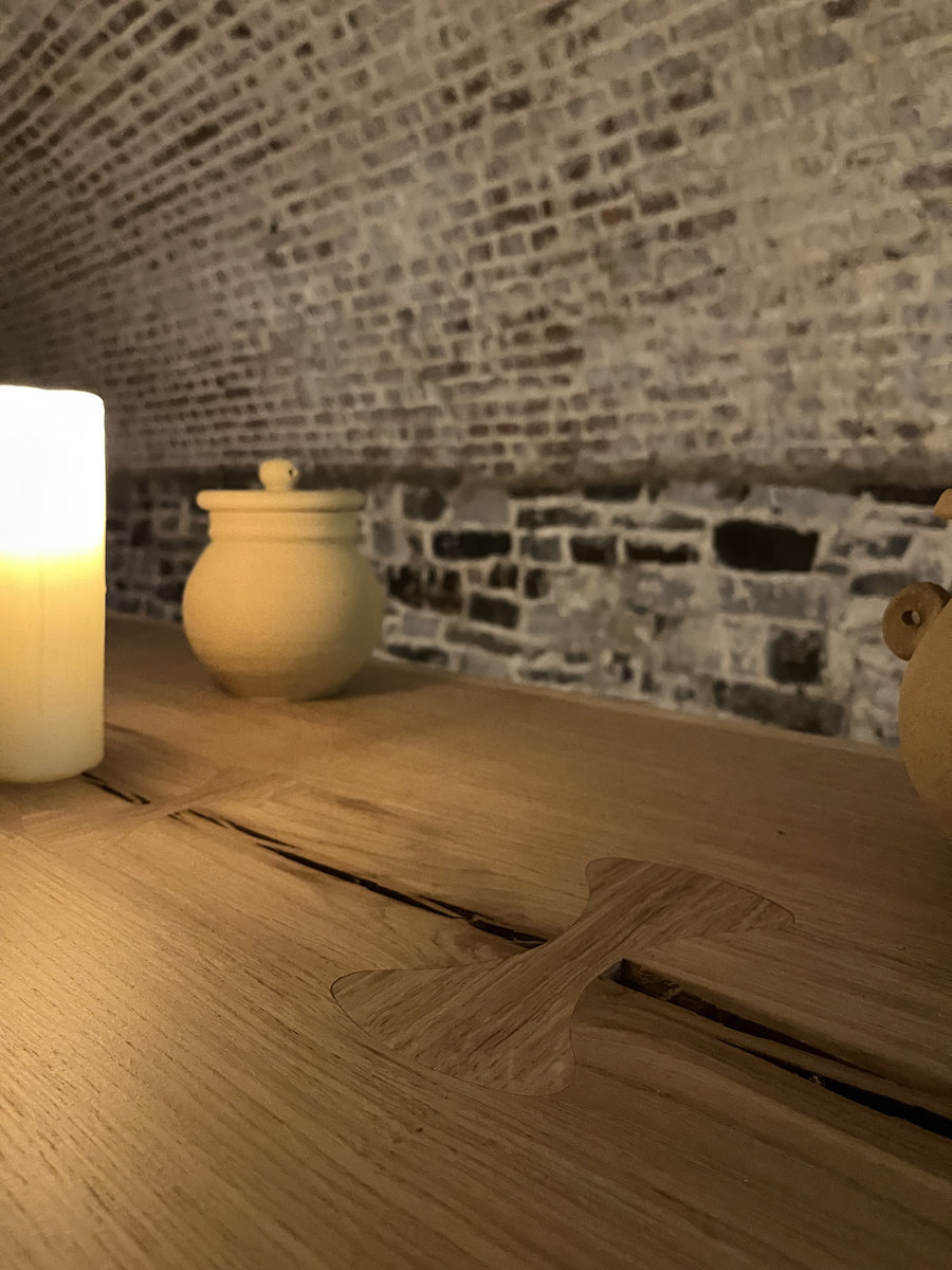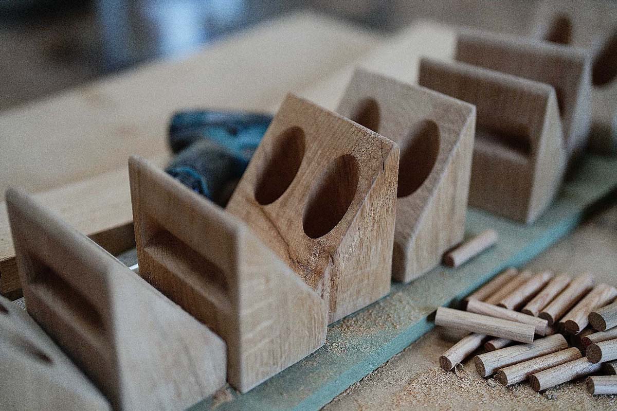 Nous avons travaillé en circuit court pour le bois de la construction du mobilier de la visite, en choisissant des essences de bois locales et sourcées à moins de 10km de nos ateliers partenaires.