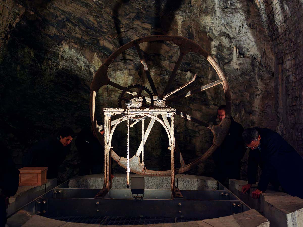 Le vieux puits, avec son eau rare et vitale, révèle l’ingéniosité et la fragilité des systèmes médiévaux, et met en lumière les différents systèmes d’approvisionnement et de distribution, essentiels en cas de siège. Enfin vient la Tour aux Chartes, transformée en salle de projection immersive : un voyage poétique y inscrit la citadelle dans le paysage namurois du Moyen Âge, conçu comme le point d’orgue du parcours.
