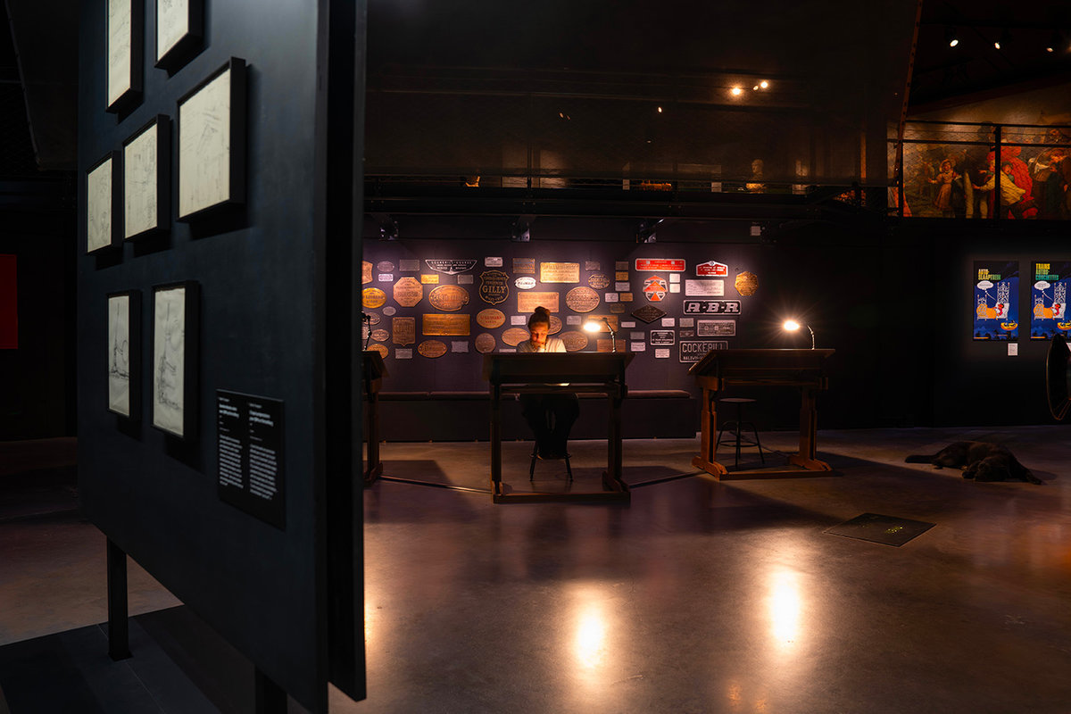 Pour les besoins de l’expo, Kascen a également conçu des cimaises en acier démontables et auto-éclairées particulièrement bien intégrées à l’univers steampunk du musée qui pourront être réutilisées par le musée lors de prochain projet d’exposition.