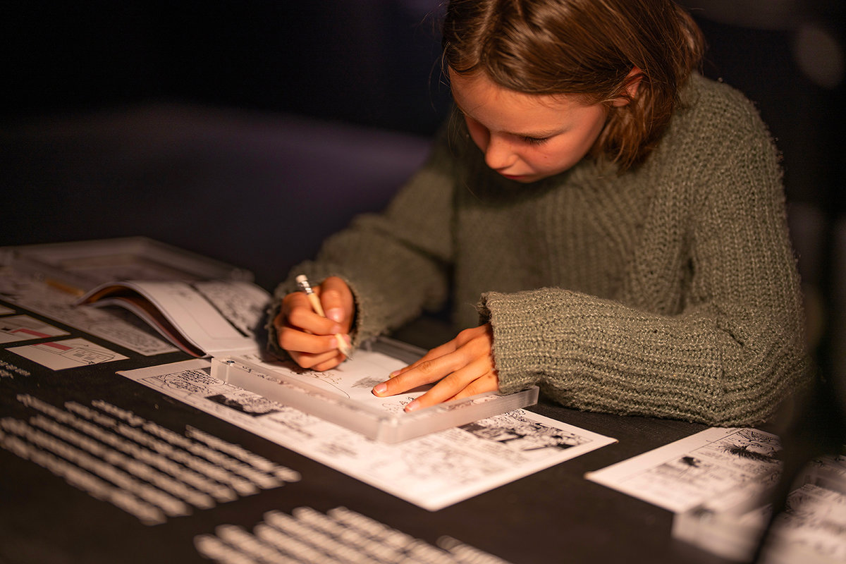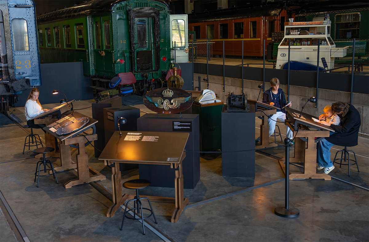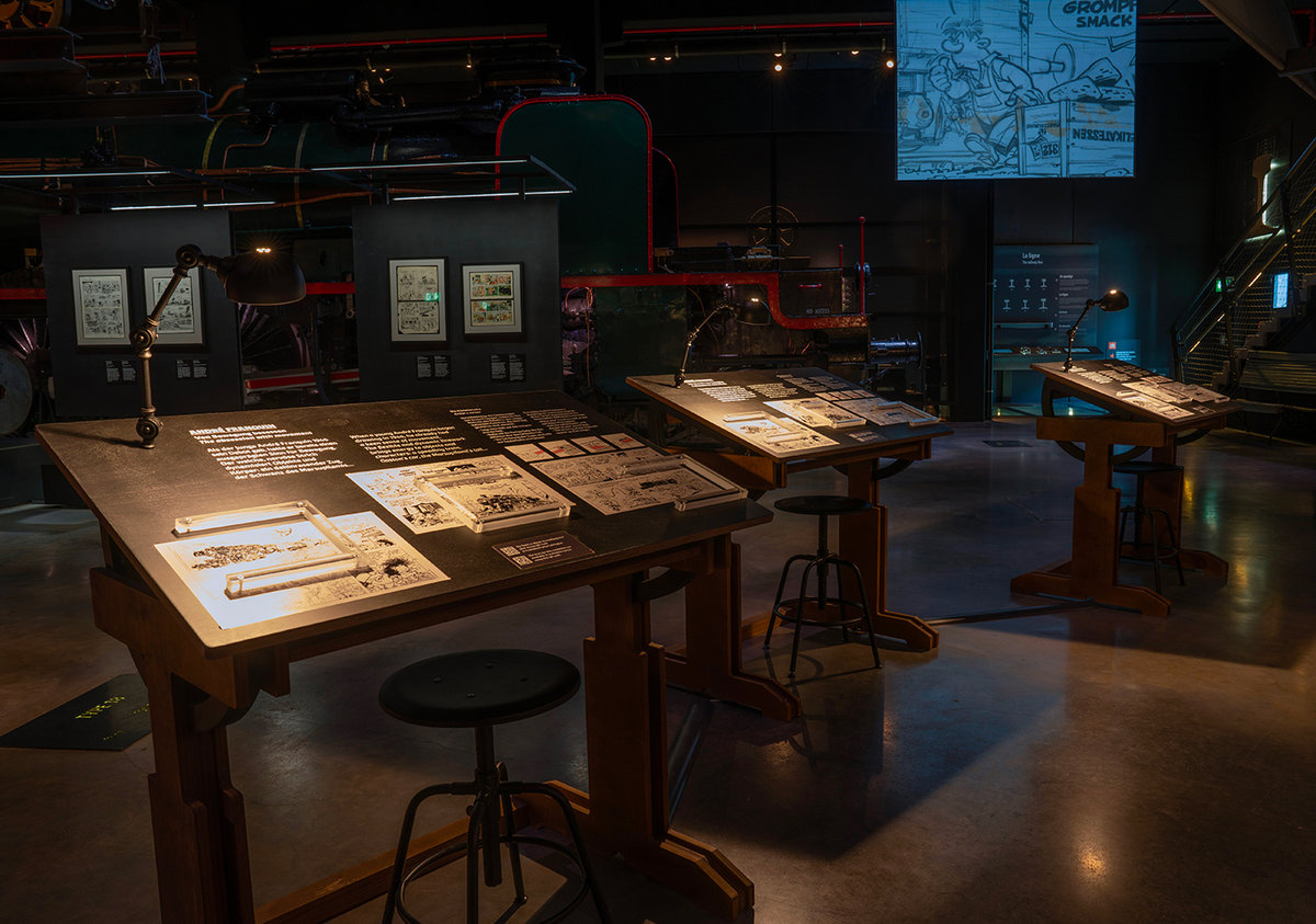 Quand il déambule sur le parcours de l’exposition permanente du musée Trainworld conçu par l’auteur de bande dessinée François Schuiten avec son univers particulier, le visiteur est interpellé par quatre zones créatives et interactives proposant des activités de dessin en relation avec les artistes présentés : auteurs de bande dessinée, peintres, designers, architectes et affichistes, pour qui trains et gares ont été une source d’inspiration. Enfants et adultes s’initient ainsi au dessin d’une locomotive iconique à l’aide d’un pantographe ou encore, via une application, à créer un tableau à la façon du peintre Paul Delvaux, en mettant en scène son imaginaire.