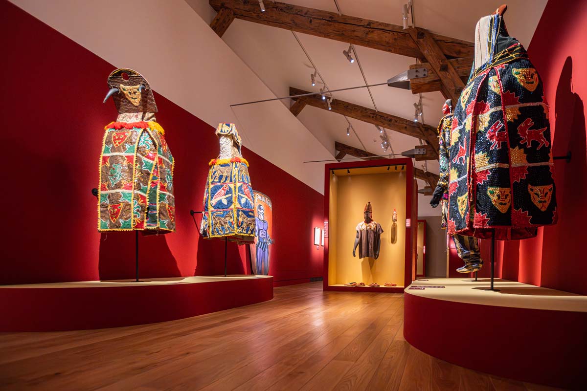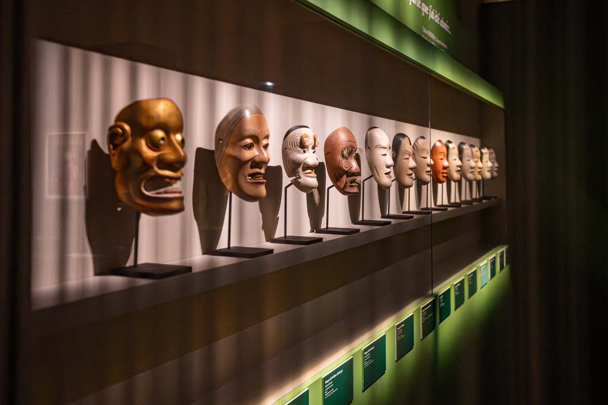 Près de 300 objets issus de collections prestigieuses (Louvre, British Museum, musées ethnographiques, laboratoires scientifiques…) y sont exposés sur des supports et soclages dynamiques et mis en valeur par une mise en lumière adaptée.