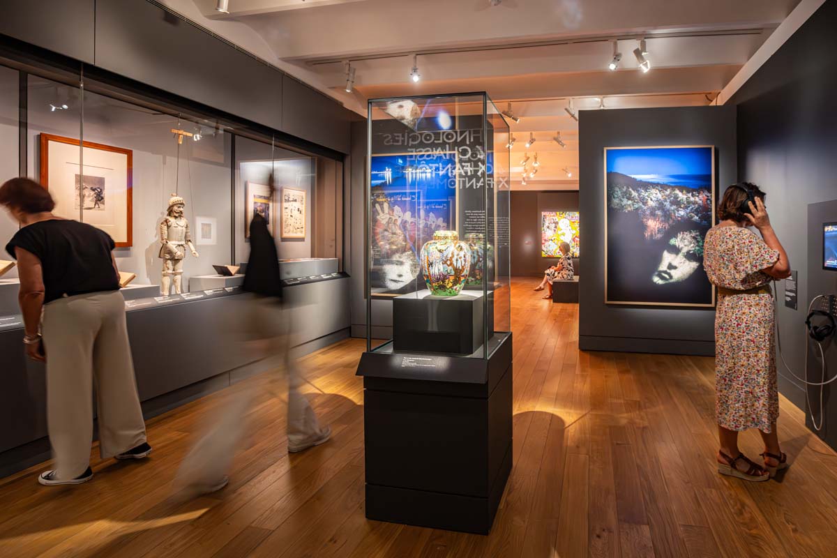 Chaque salle révèle un nouveau visage du fantôme, de l'Antiquité au Spiritisme du XIXe siècle, en passant par l'Ethnographie, l'Art contemporain (Christian Boltanski, Sophie Calle, Alain Fleischer…) et la bande dessinée (Jacques Tardi, Enki Bilal, Morris, José Luis Munuera…).