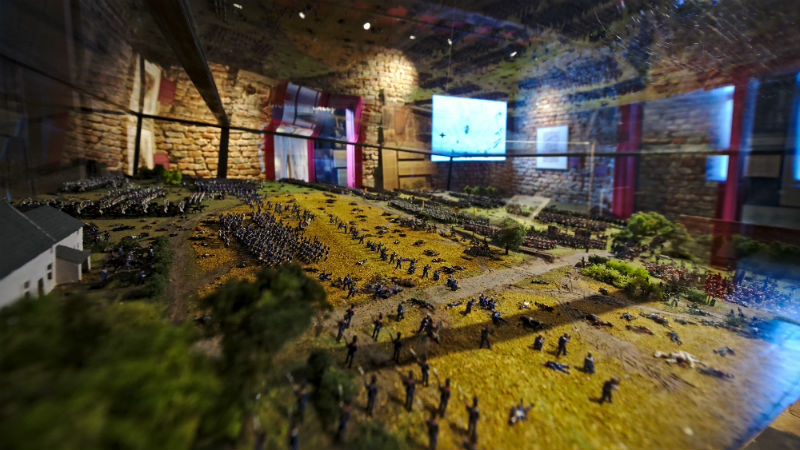 Le concept scénographique incarne l’une des pages dramatiques de ce tournant crucial de l’histoire de l’Europe qu’a été la Bataille de Waterloo, l’un des hauts lieux de l’épopée Napoléonienne. Lors de ce combat livrée le 18 juin 1815 par l’Armée du Nord, emportée par Napoléon, contre l’Armée des Alliés, c’est dans ce corps de ferme qui subsiste encore aujourd’hui que les Alliés avaient implanté un hôpital militaire.