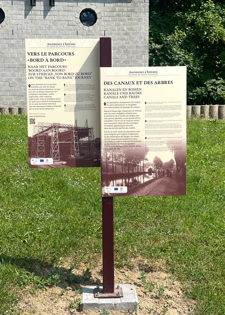 C’est à un voyage entre le ciel et l’eau que le parcours invite tout au long d’un site unique à découvrir au cœur d’un écrin de verdure. Le public peut ainsi cheminer sur les berges de la voie d’eau et apprendre l’histoire de ces monuments classés au patrimoine mondial Unesco via une appli ludique intégrant récits sonores, animations d’images d’archives, etc. Les visiteurs se trouvent face à des témoignages de l’époque où la Wallonie était la rivale de l’Angleterre en termes de développement économique, fin XIXe - début XXe siècle : charbon, acier… ici des hommes ont transpiré pour forger de puissants empires industriels.