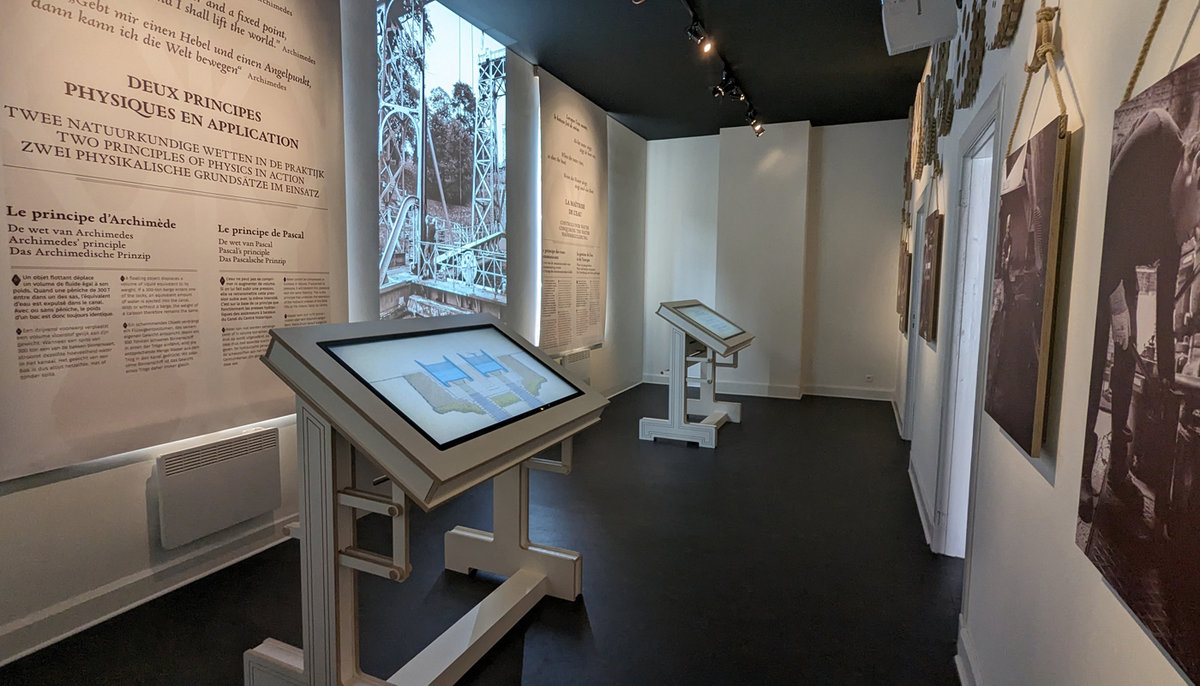 L’ascenseur n°1 se visite via une expo interactive avec projections et manipes ainsi que la présentation des plans de l’ingénieur Clark mettant en mouvement des tonnes d’eau grâce au génie des principes hydrauliques.