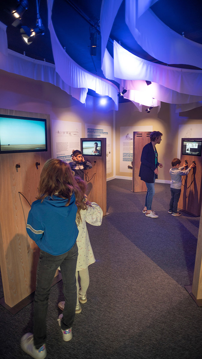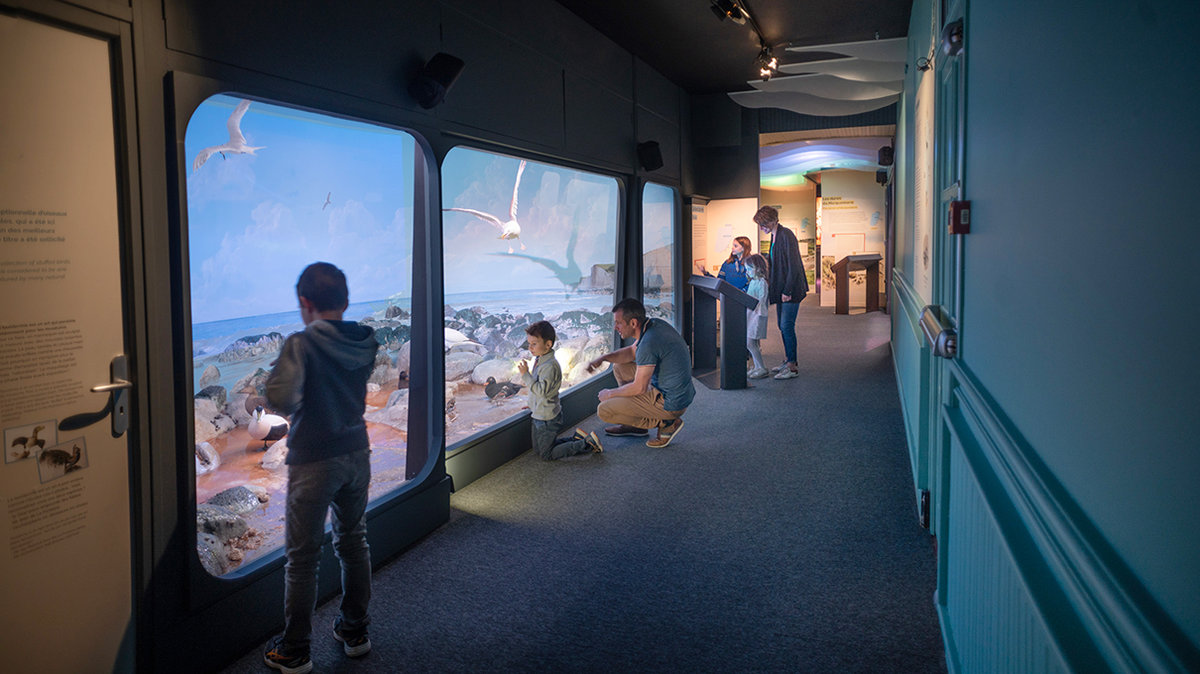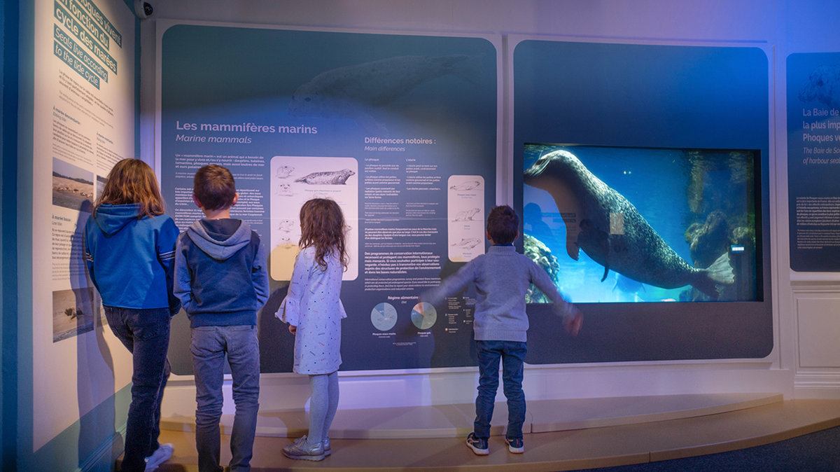 L’expérience de visite s’est ainsi complétée d’outils de médiation interactifs, d’un show immersif d’introduction évoquant la formation de la baie depuis ses origines, de supports pédagogiques dédiés à la gestion des risques spécifiques à cet estuaire et d’une scénographie entièrement repensée : salle consacrée aux phoques, portraits vidéos de personnages du cru. Des jeux originaux ont été créés pour les plus petits, en lien avec les thématiques.
