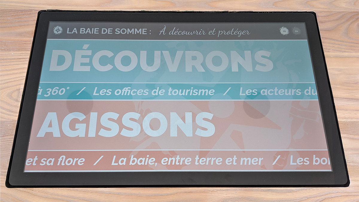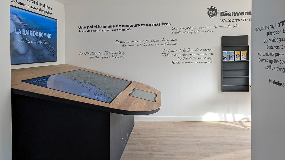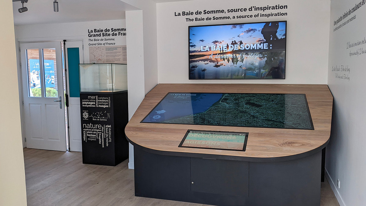 Ce projet s'est ajouté au projet de rénovation de la Maison de la Baie de Somme. Il permet de découvrir la baie de Somme et ses différentes offres touristiques de façon interactive.