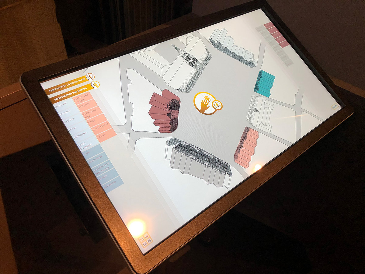 La Grand Place de Bruxelles est un endroit incontournable qui raconte toute l’histoire de la ville à travers les dorures et les moulures de ses façades. Nous avons créé une application multimédia qui permet au visiteur de l’exposition “The Grand Place to be !” de compléter sa visite par une découverte interactive des moindres détails des décorations des façades des maisons bordant la Grand Place.